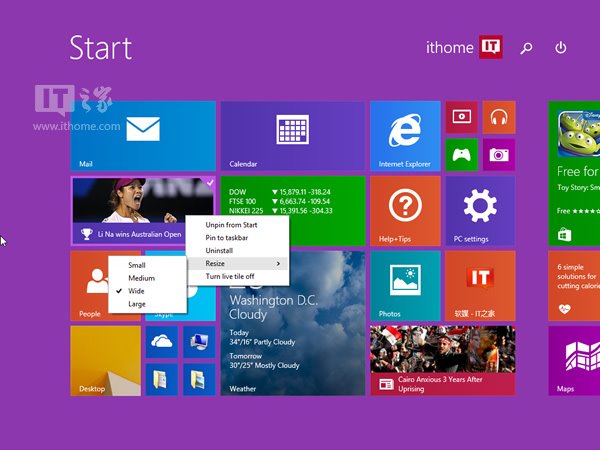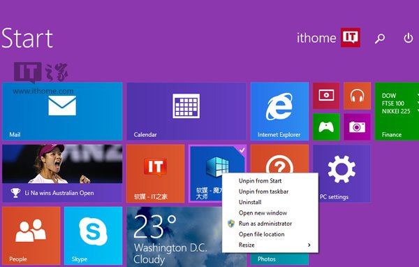 从Win8到Win8.1,开始屏幕Modern应用、桌面程序都是通过底部菜单栏统一管理,让桌面用户产生强烈的隔阂感(两个Windows界面),这次Win8.1 2014 Update下,桌面用户可以在开始屏幕直接对Modern应用/桌面Win32程序采取右键式的管理,找回“桌面”的右键体验。